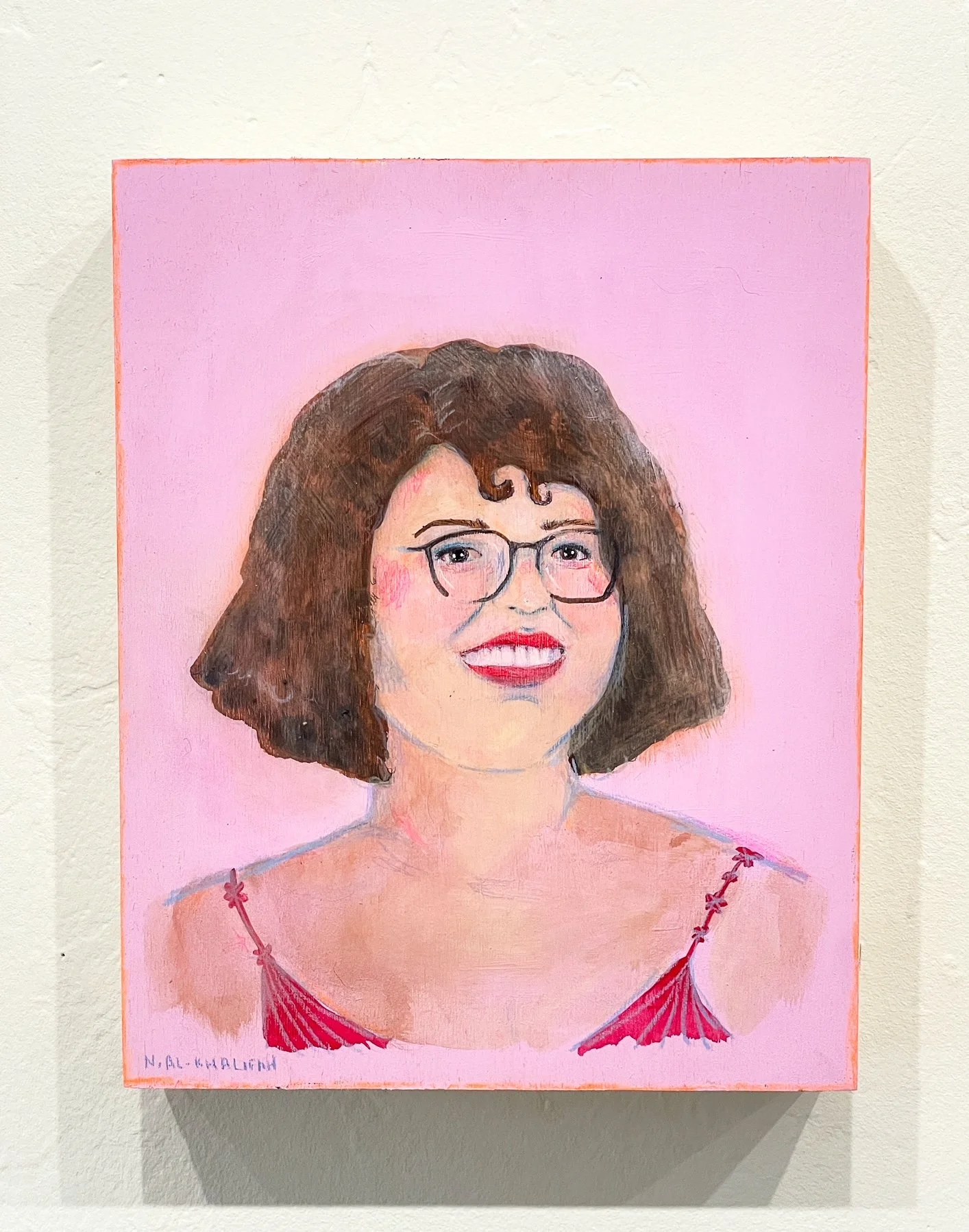 NAK: Well, I’ll Be Damned began as a private outlet that helped me manage my mental health and slowly grew into a body of portraits, where my friends appear in bursts of color and humor. While my parents show up as the complicated puzzle I keep trying to solve. So the show maps how I use portraiture, memory, and humor to process who I am in relation to the people who made me, the people I’ve chosen, and the people I continue to love, with the title nodding to those moments of recognition when I see myself reflected in these faces.